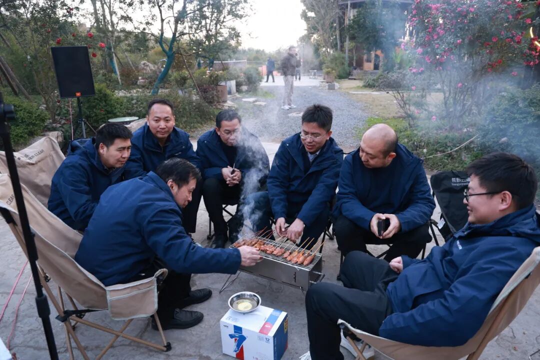 高强度研讨期间,参会人员白天集中攻关、夜间加班完善方案,全力以赴推进各项议程。张友君董事长体恤团队辛劳,组织篝火烧烤派对。