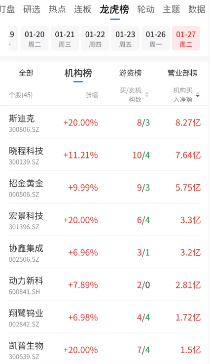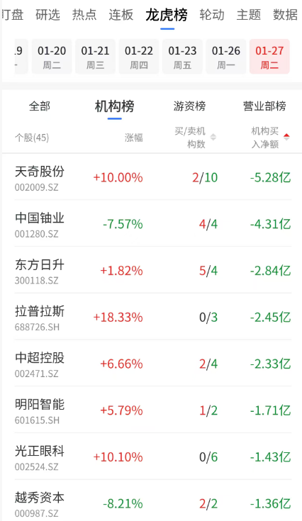 机构龙虎榜