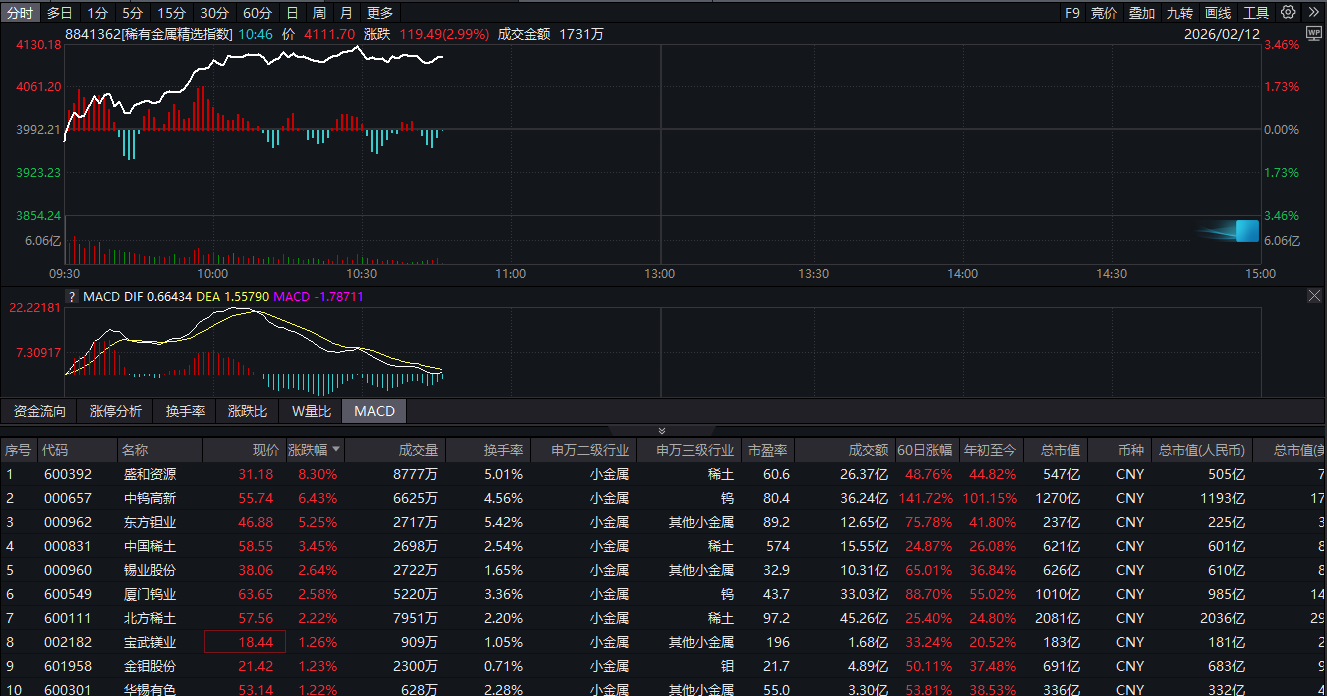 消息面上,中国五矿化工进出口商会2月12日发布通知,将于2026年3月25日举办稀土和稀有金属出口政策及形势说明会。