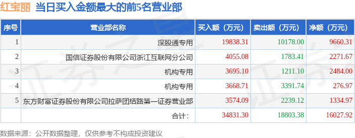 从龙虎榜公布的当日买卖数据来看,机构合计净买入1.98亿元,北向资金合计净卖出3.3亿元。