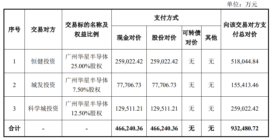 中国经济网北京3月31日讯 TCL科技(000100)(000100.SZ)昨日披露公告,公司拟通过发行股份及支付现金的方式购买恒健投资、城发投资、科学城投资持有的广州华星半导体(881121)45.00%股权,并募集配套资金。本次交易价格为932,480.72万元,交易标的增值率6.68%。