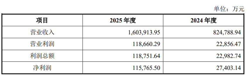 公告显示,广州华星半导体(881121)2024年、2025年的营业收入分别为824,788.94万元、1,603,913.95万元;净利润分别为27,403.14万元、115,765.50万元。