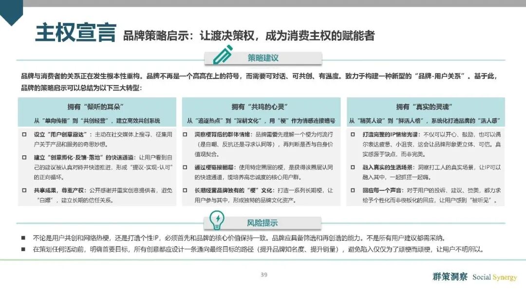 主权宣言:主动参与,掌握消费(883434)主导权。“全人消费(883434)”时代的核心特征之一,是消费(883434)者消费(883434)主权的全面觉醒,“主权宣誓”成为消费(883434)市场的重要趋势。消费(883434)者希望在与品牌的互动中,拥有更多的声量与权力,并且最终在消费(883434)行为中实现自身价值感的印证。《报告》指出,品牌必须真正让渡决策权,建立从用户创意征集到落地反馈的完整通道,用实际行动回应用户诉求,从“符号制造者”转变为“可对话、可共创的用户伙伴”。