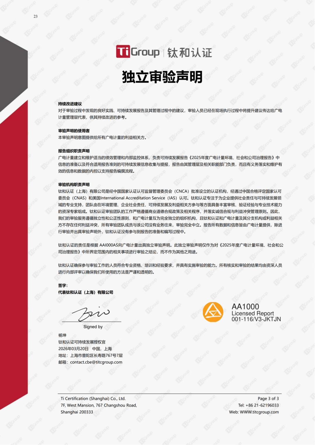 *公司披露的2025年度ESG报告,已由独立第三方审验机构依据AA1000AS v3鉴证标准进行鉴证并出具鉴证意见,确保报告披露的准确性、真实性与实质性。