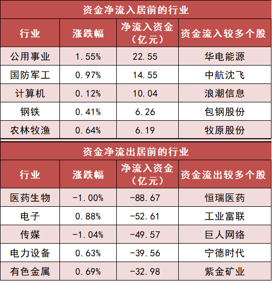 3.公用事业等行业实现净流入