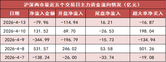 今日沪深两市主力资金开盘净流出114.94亿元,尾盘净流入16.21亿元,全天净流出79.96亿元。