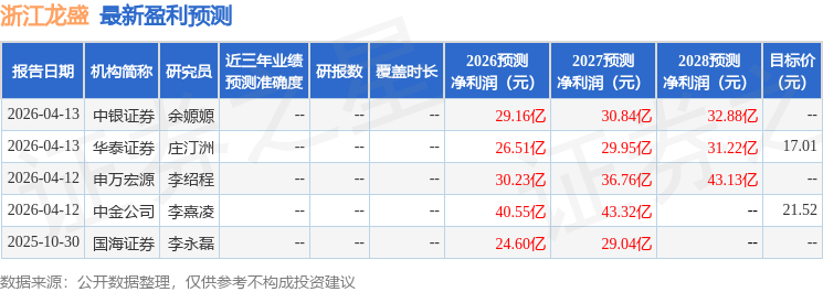 最新盈利预测明细如下: