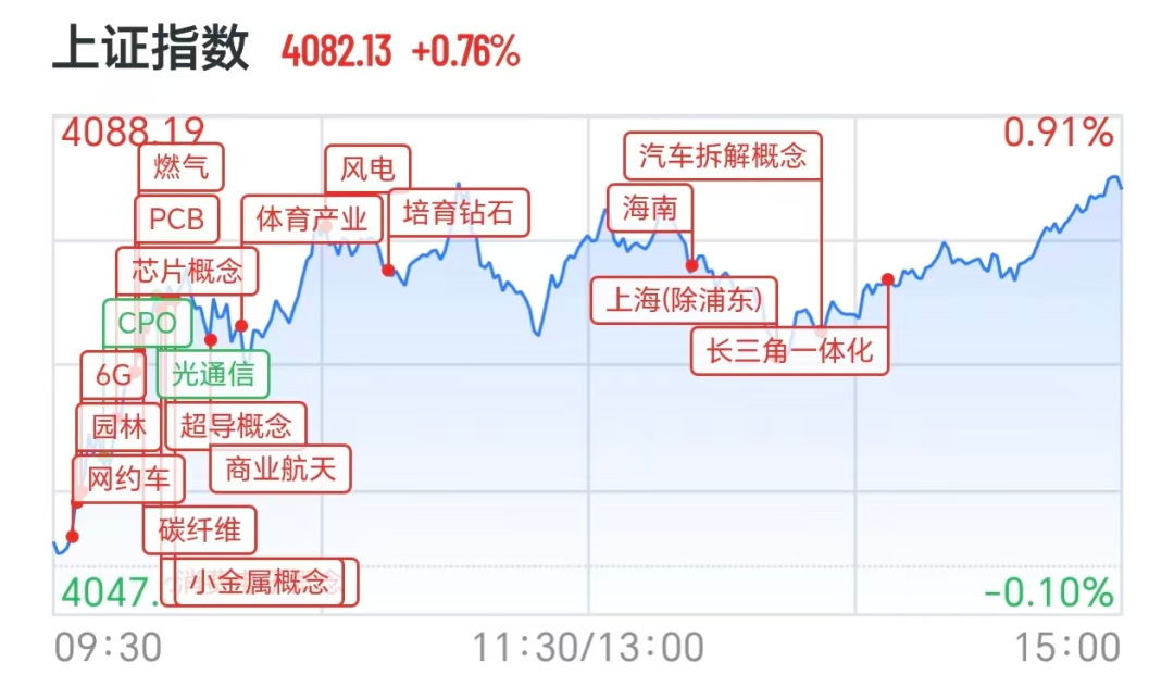 4月20日,A股指数(1A0002)涨跌不一,沪指震荡拉升涨0.76%,深证成指(399001)涨0.55%,科创综指(1B0680)涨0.73%,创业板指(399006)冲高回落,全市场超3400只个股上涨。