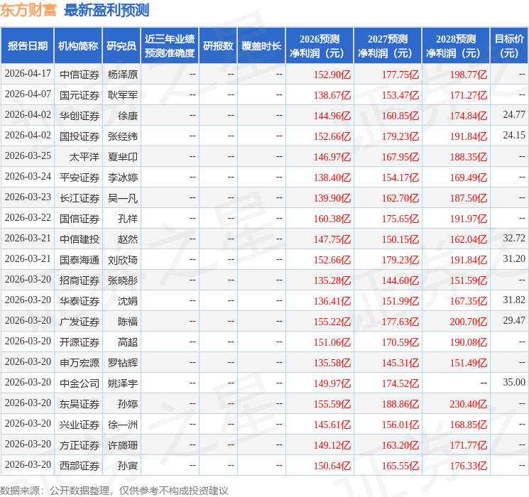 东吴证券(601555)股份有限公司孙婷,武欣姝近期对东方财富(300059)进行研究并发布了研究报告《2026年一季报点评:整体表现稳健,自营业务略承压》,给予东方财富(300059)买入评级。