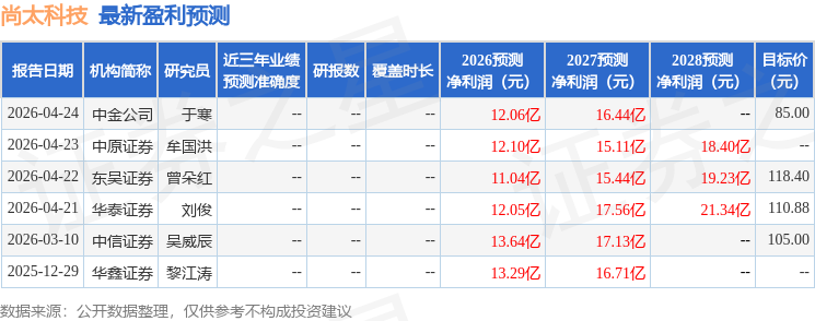 东吴证券(601555)股份有限公司曾朵红,阮巧燕,岳斯瑶近期对尚太科技(001301)进行研究并发布了研究报告《2026年一季报点评:Q1单位盈利整体承压,业绩符合预期》,给予尚太科技(001301)买入评级,目标价118.4元。