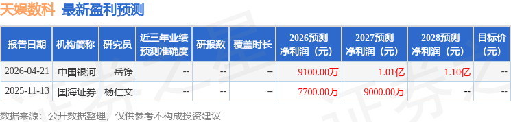 太平洋(601099)证券股份有限公司郑磊,李林卉近期对天娱数科(002354)进行研究并发布了研究报告《2026Q1业绩同比高增,AI业务平台及全球化战略稳步推进》,给予天娱数科(002354)增持评级。
