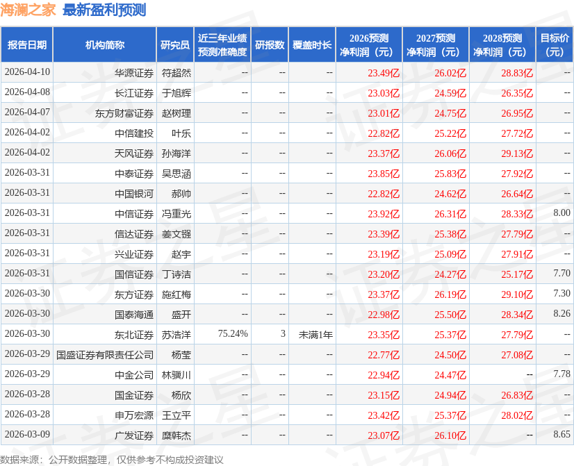 最新盈利预测明细如下: