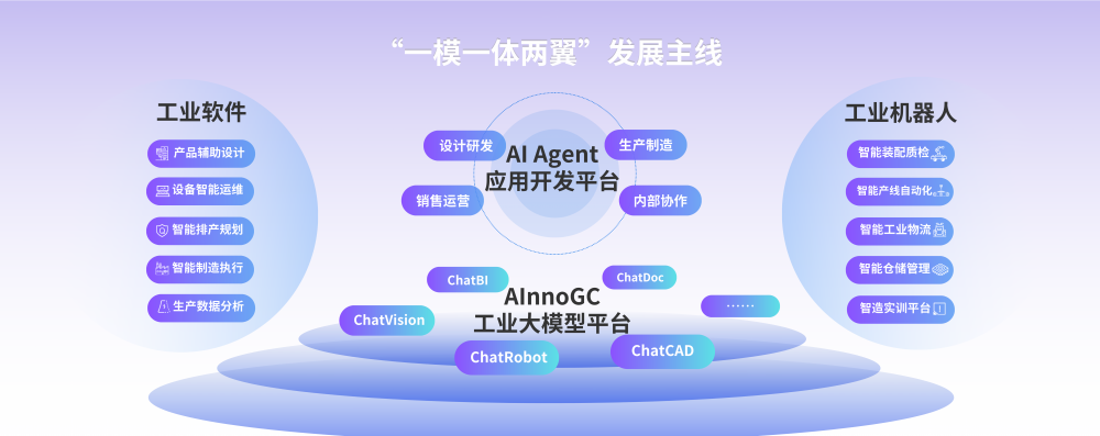制造业场景很多,但创新奇智锚定了工业软件与工业机器人这两个落地抓手,即“两翼”。其中一翼是工业软件。在研发端,创新奇智探索用工业大模型技术改造传统的工业设计软件,推出ChatCAD生成式辅助工业设计应用,可通过文本生成CAD模型,并探索图像输入生成CAD的路径。据悉,创新奇智在财报发布前夕与全球领先的基础设施工程软件公司Bentley签署战略合作,联合打造大模型支持的新型基础设施工程软件产品。在生产端,大模型智能体已与MES、CRM等多种工业软件融合,提升企业的生产和运营效率。另一翼是工业机器人,创新奇智ChatRobot采用多模态VLA策略,具备感知、理解、规划和决策的闭环能力。这种技术让机器人能胜任生产调度和精益管理等复杂任务,成为智能制造的重要助力。