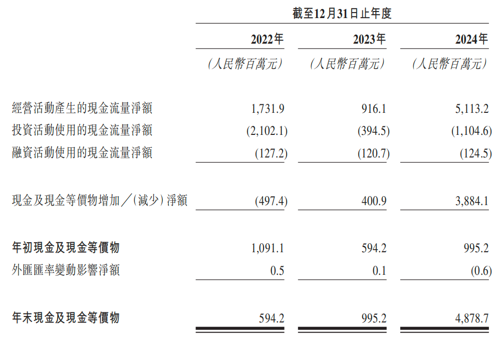 在更新的招股书中,卡游的现金流状况发生了大幅变动,其经营活动产生的现金流量净额2022年、2023年分别为17.32亿元、9.16亿元,但是2024年暴增至51.13亿元,较2023年猛增458%。
