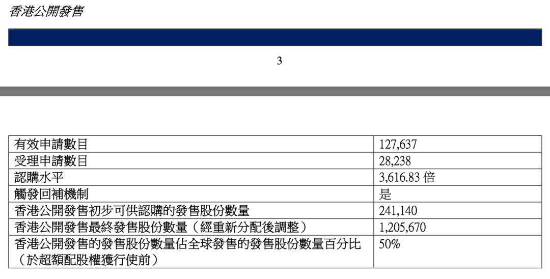 最终的分配结果也显示,沪上阿姨公开发售的认购水平达到3616.83倍。