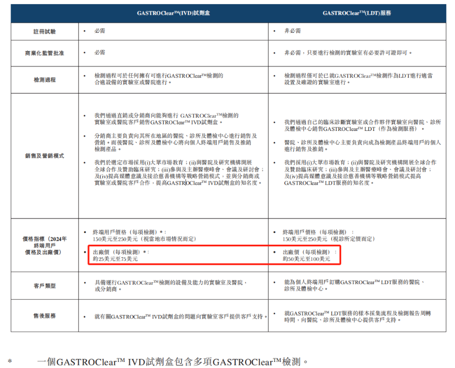 GASTROClear 作为IVD产品及作为LDT服务于公司已将GASTROClear 商业化的市场的主要差异,图片来源:企业招股书