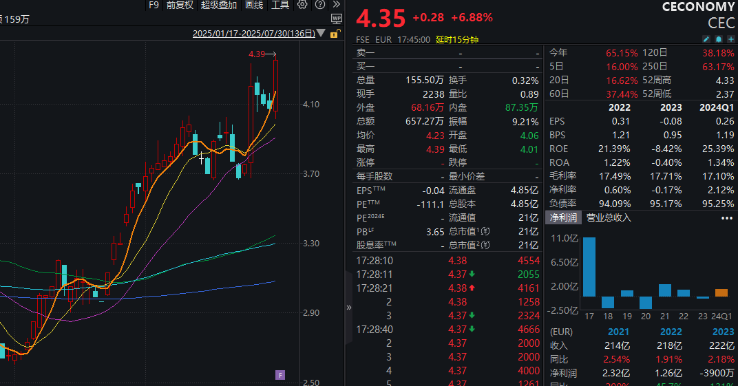显示,目前CECONOMY共有4.85亿总股份,按每股4.60欧元的价格计算,京东收购CECONOMY全部股份的所需资金达到22.31亿欧元,按最新汇率约合183亿元人民币。