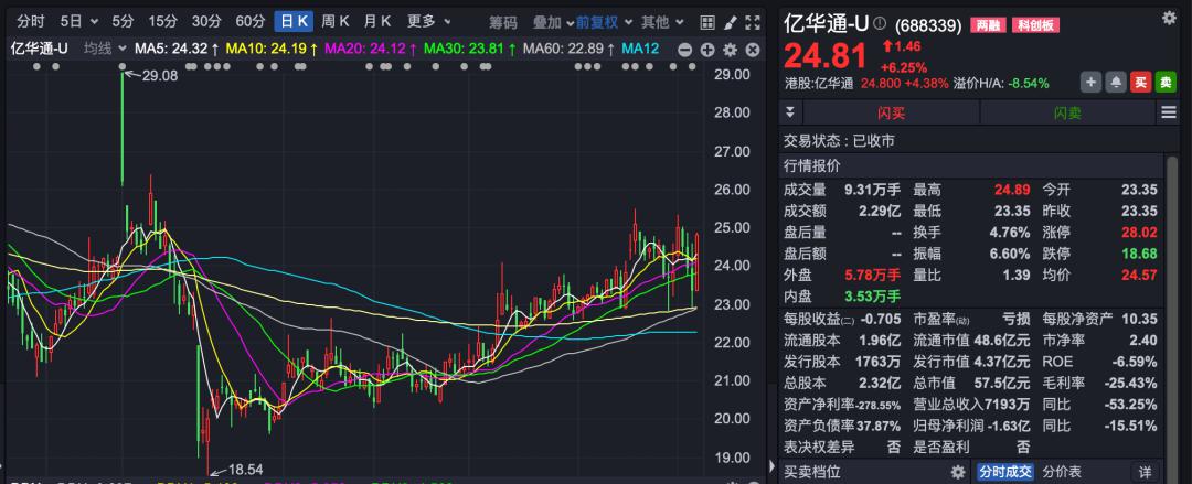 截至9月5日收盘,亿华通股价24.81元/股,总市值57.47亿元。