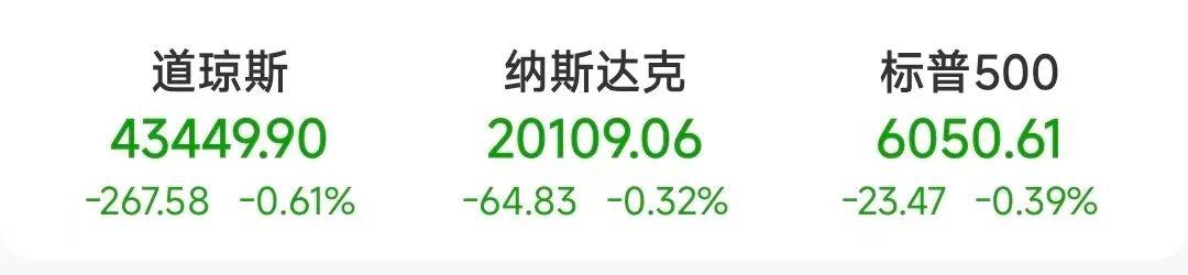 当地时间12月17日,美股三大指数收跌。截至收盘,道指跌267.58点,跌幅为0.61%,报43449.90点;纳指跌64.83点,跌幅为0.32%,报20109.06点;标普500指数跌23.47点,跌幅为0.39%,报6050.61点。