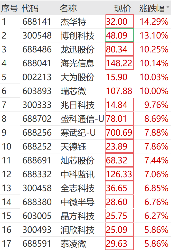 1月7日下午,A股芯片板块集体拉升,大为股份(002213)、瑞芯微(603893)涨停,寒武纪股价突破700元,再创历史新高。
