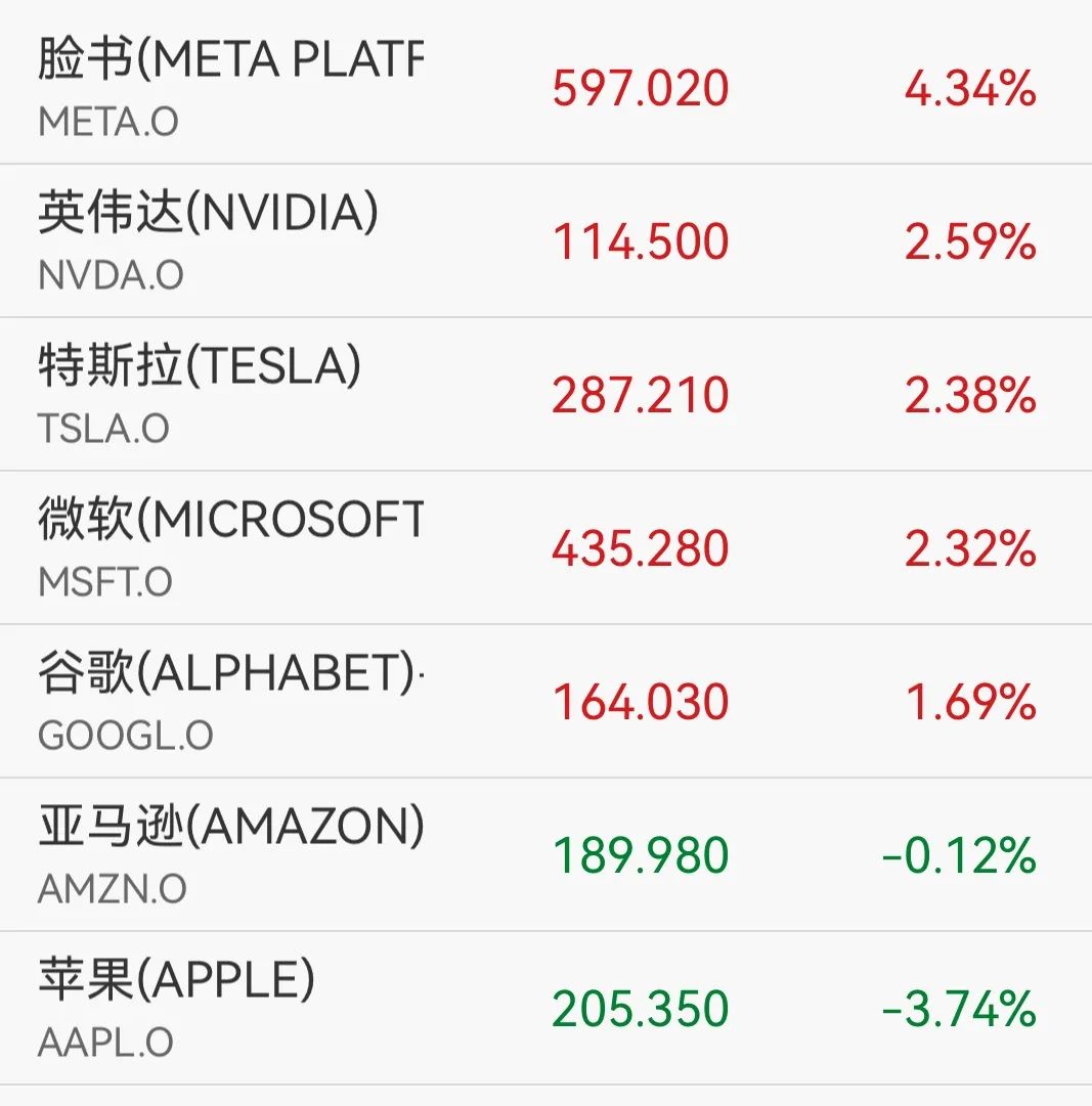 美东时间5月2日,大型科技股多数收涨,脸书涨逾4%,英伟达涨逾2%,特斯拉涨逾2%,微软涨逾2%,谷歌涨逾1%,亚马逊微跌0.12%。