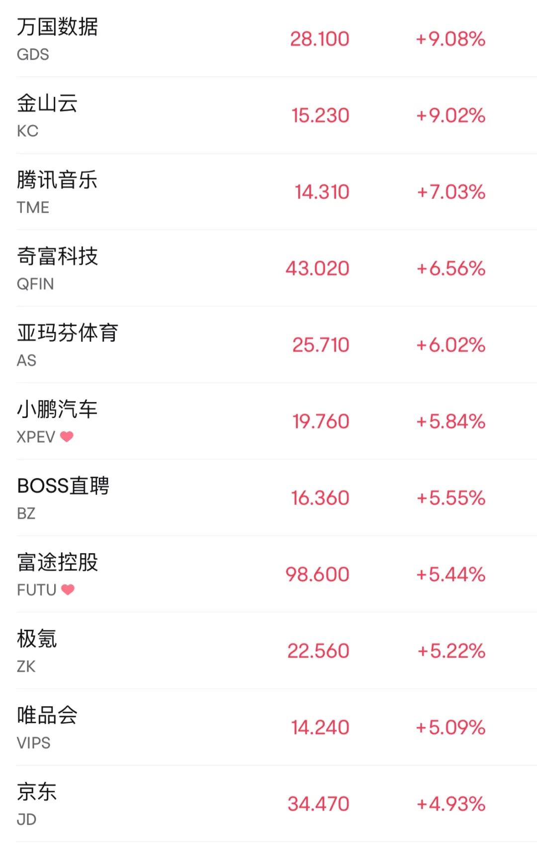 热门股方面,金山云、万国数据涨超9%,腾讯音乐涨超7%,小鹏汽车、BOSS直聘、极氪涨逾5%,京东、阿里巴巴涨超4%,哔哩哔哩涨超3%,百度、蔚来涨超2%。