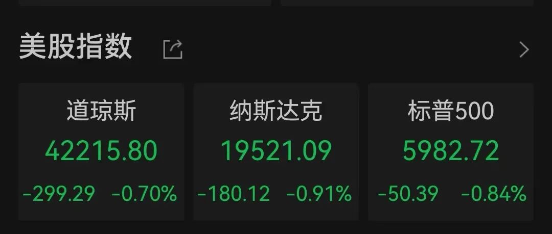当地时间6月17日,美股三大股指全线收跌。数据显示,截至收盘,道琼斯工业指数、纳斯达克指数、标普500指数分别跌0.7%、0.91%、0.84%。